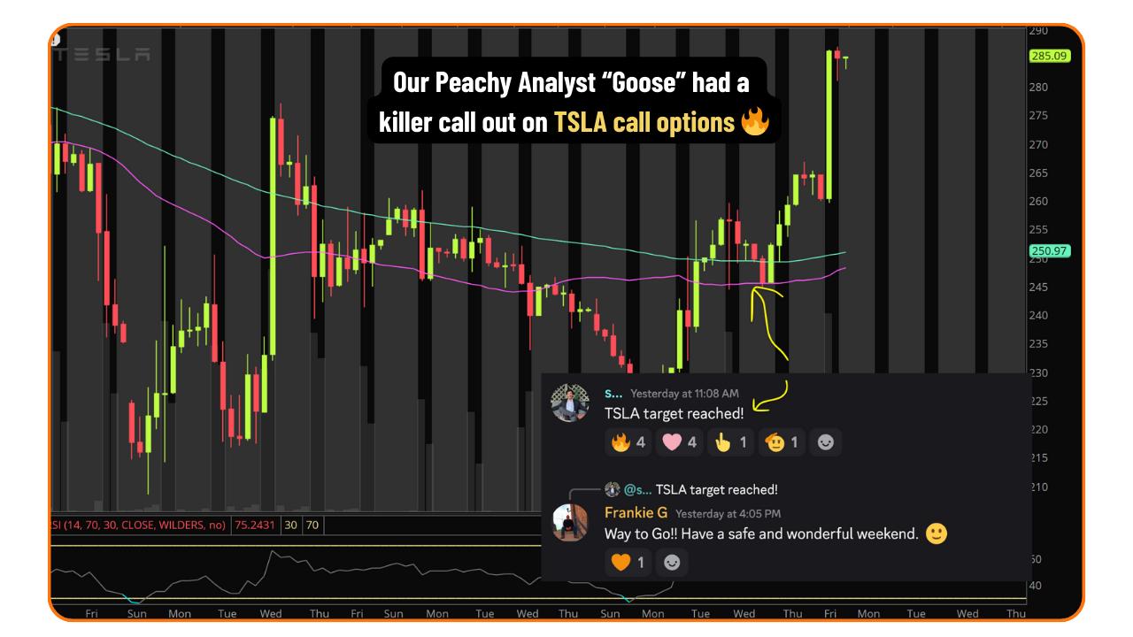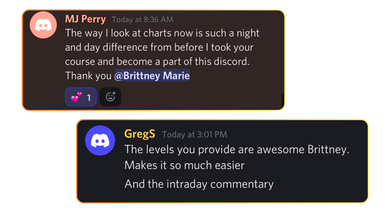We provide our members with a Clear, Simple Trade Plan, with market analysis & key levels all done for you.Ā We also have a peachy support team to help give you extra live commentary in chat as the trades are playing out or answer any questions you have, plus provide feedback on your current or past trades to help you excel as an independent trader!Ā